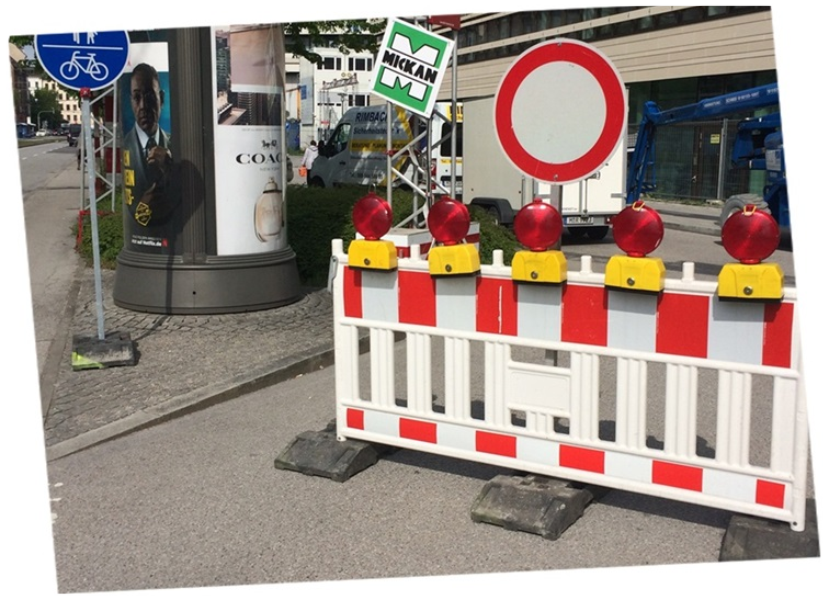 Punktuelles setzten der Sicherung ist auch bei Baustellen im Straßenverkehr sinnvoll, da verschobene Absperrschrankengitter das Unfallrisiko im Straßenverkehr drastisch erhöhen.